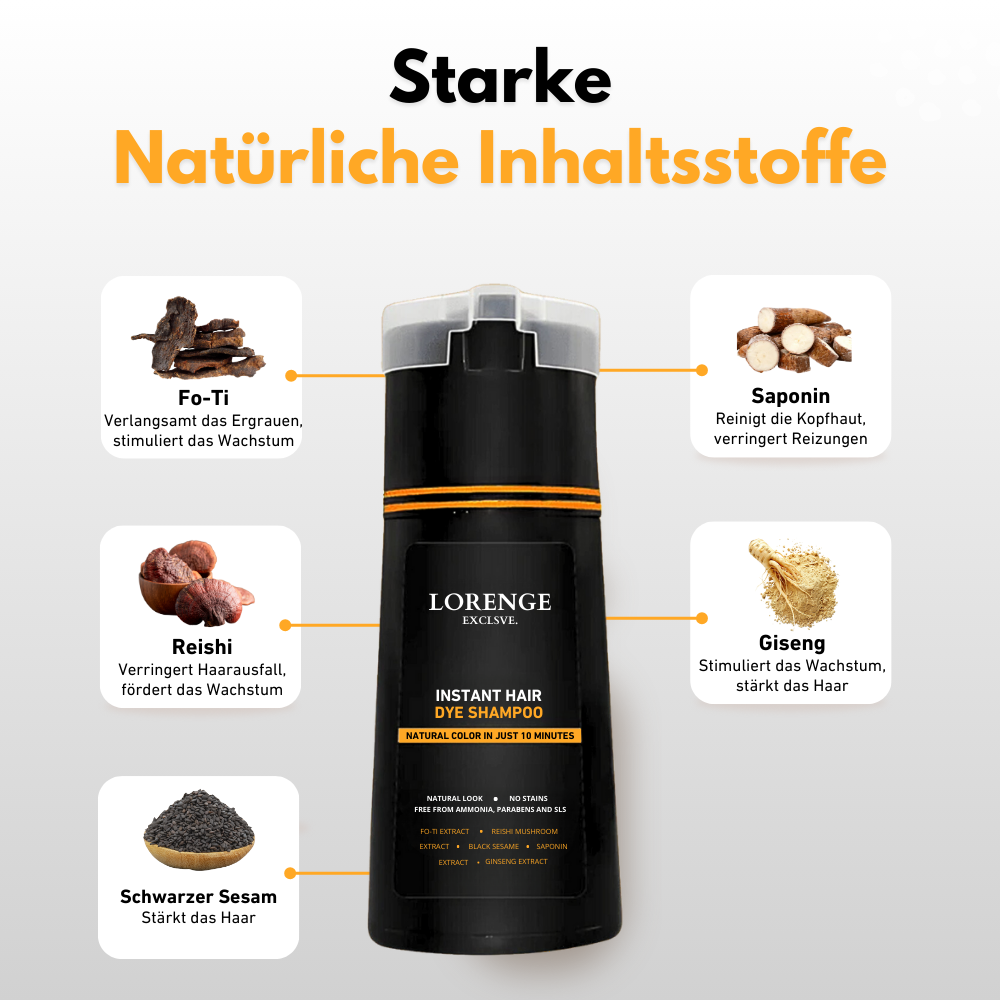 Sagen Sie „Tschüss“ zu grauem Haar und „Hallo“ zu Ihrer natürlichen Farbe – mit dem Lorenge Instant Hair Dye Shampoo!